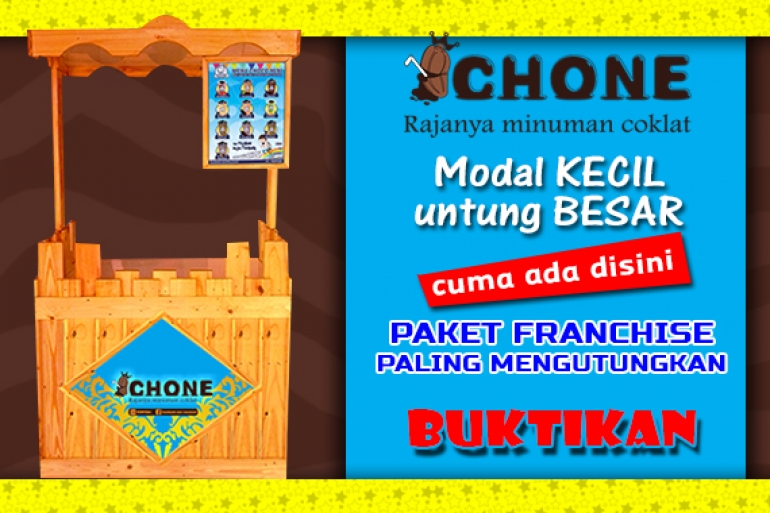 Waralabakan - Chone merupakan brand minuman minuman coklat cepat saji. Chone menawarkan kesempatan peluang usaha dengan konsep waralaba/franchise.